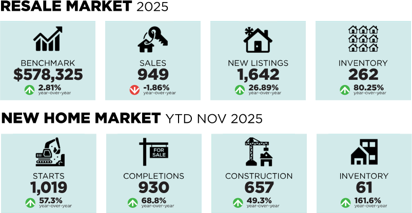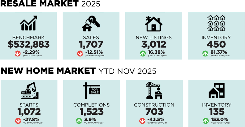 The additional supply choice both in the resale and new home market took much of the pressure off home prices. While benchmark prices did trend down in 2025, they have not offset the exceptional gains reported over the previous four years. In fact, the annual detached benchmark price of $629,717 is still 40 per cent higher than annual levels reported in 2021.